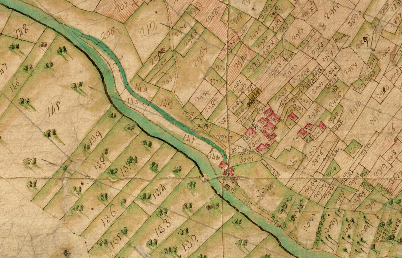 Extrait du cadastre sarde : dérivation et bédière pour le moulin des Moillettes à Barberine