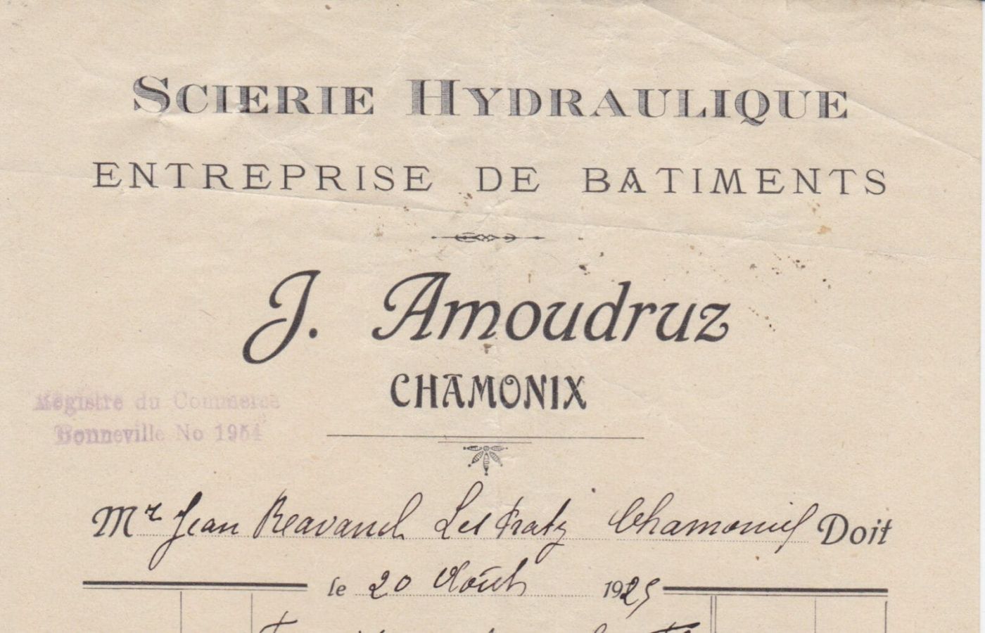 1925 – Facture du scieur Amoudruz