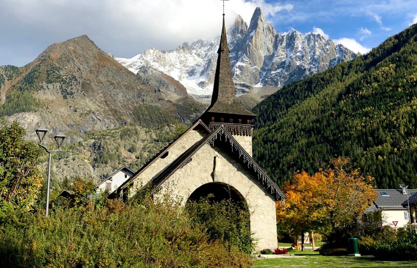 Visitée, photographiée sous tous les angles, la chapelle des Praz présente des lignes architecturales particulièrement esthétiques, épousant les tracés naturels des aiguilles qui la surplombent, les Drus, les Flammes de pierre… Elle fait partie de notre patrimoine récent puisqu’elle n’est construite que depuis quelques dizaines d’années. Mais à peine plus d’un demi-siècle lui aura suffi pour parfaire son intégration dans le site. Connue de tous, elle est sur tous nos documents touristiques : on la peint, on la sculpte, on la reproduit en maquette… et on l’envie aux habitants des Praz.