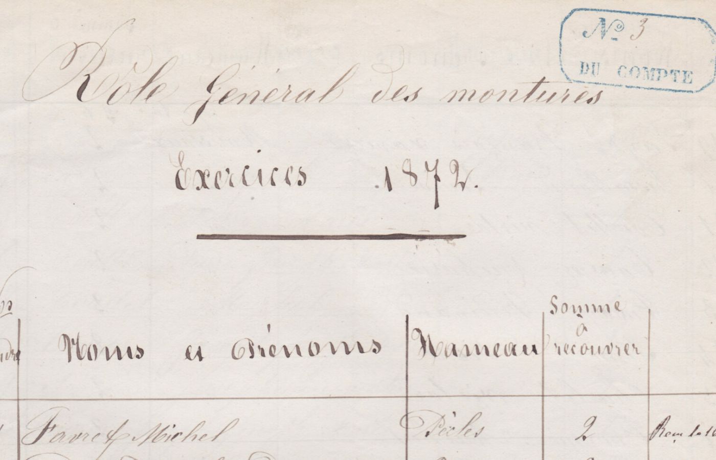 Extrait du Compte-rendu de la revue des montures par la Compagnie des Guides en 1872