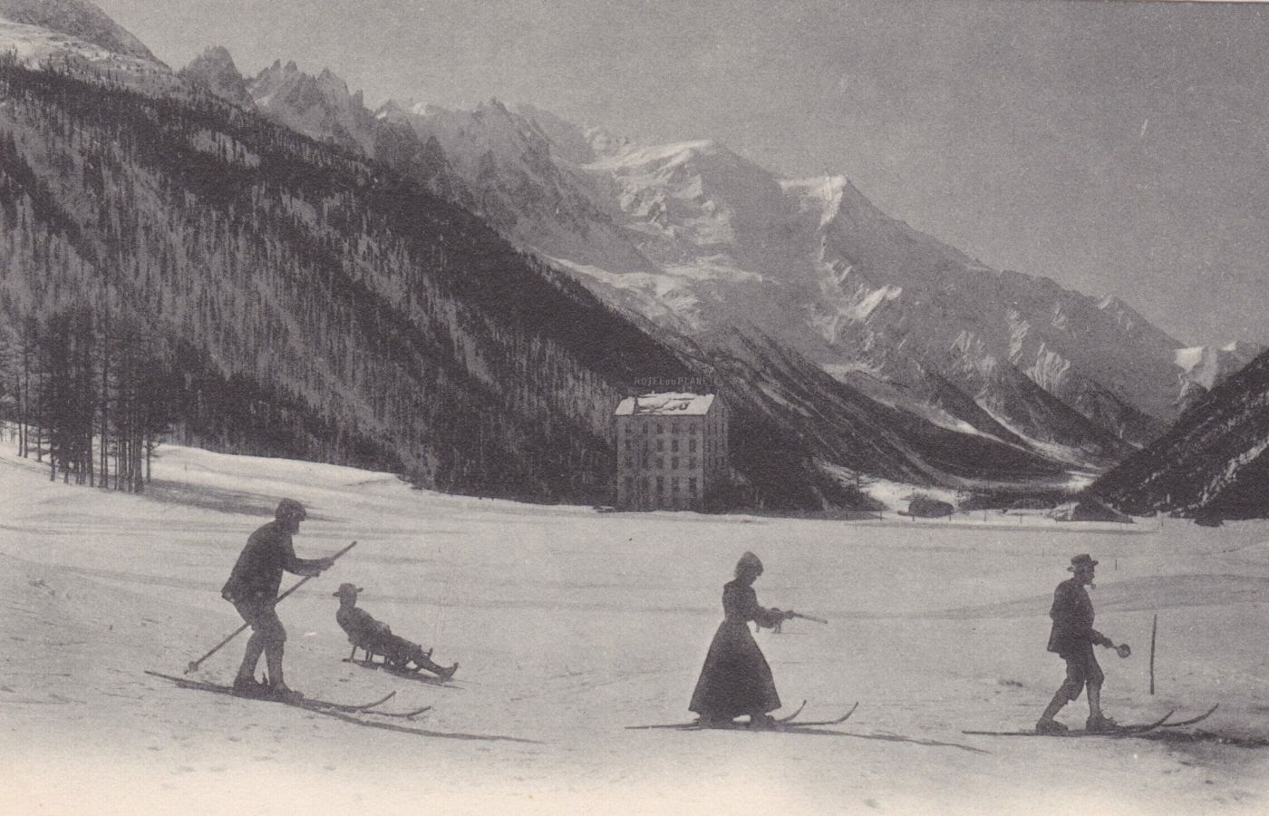 Bête de somme et monture idéale dans quasi toutes les montagnes du monde, le mulet a de longue date été adopté par les habitants de la vallée pour leurs tâches pastorales, agricoles ou forestières ordinaires. Animal rustique au pied montagnard, il a été très rapidement utilisé pour porter les sacs des voyageurs, puis les voyageurs eux-mêmes, ravis d’être exemptés de la rude grimpée sur les flancs abrupts des montagnes. De leur côté, guides et muletiers n’ont pas refusé la rondelette somme d’argent à gagner pour ces services, mulet et guide bénéficiant parfois du même tarif. L’excursion à dos de mulet devient courante, et c’est ainsi que chaque jour on peut suivre ces spectaculaires caravanes de mulets portant cavalier et de marcheurs, en route pour la Flégère, la Mer de Glace ou le glacier des Bossons.