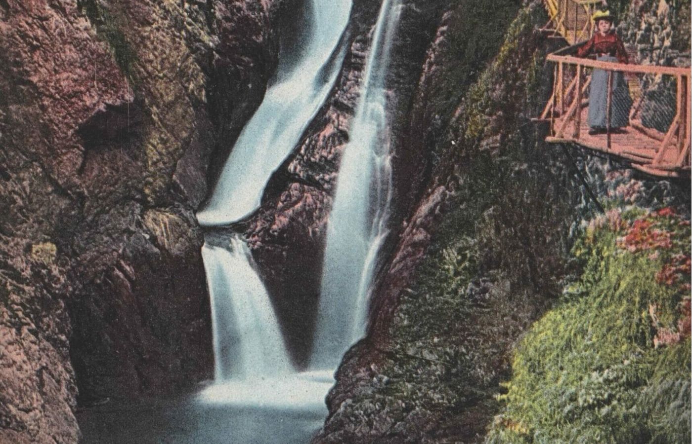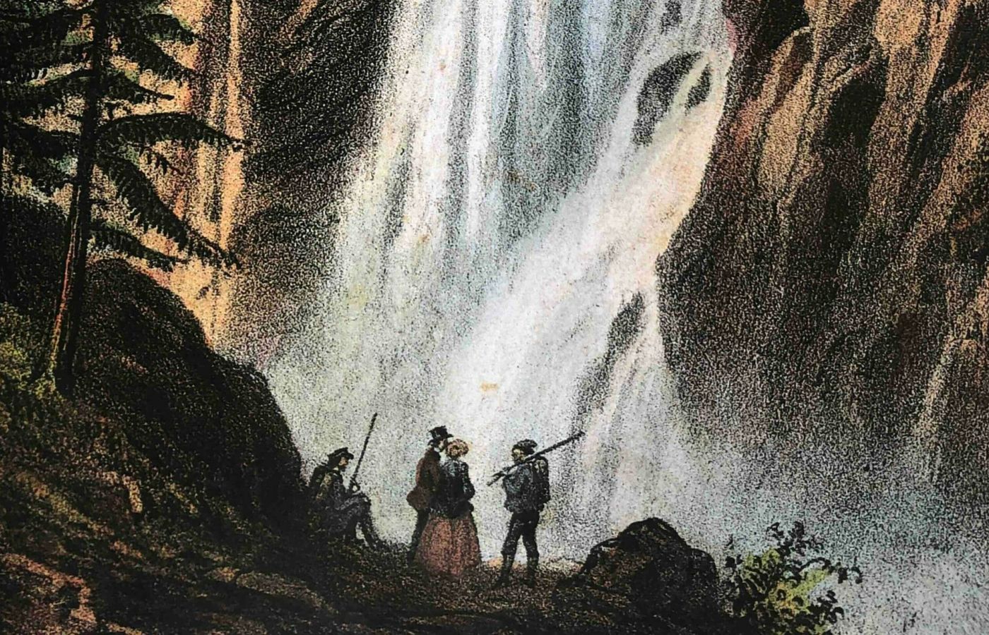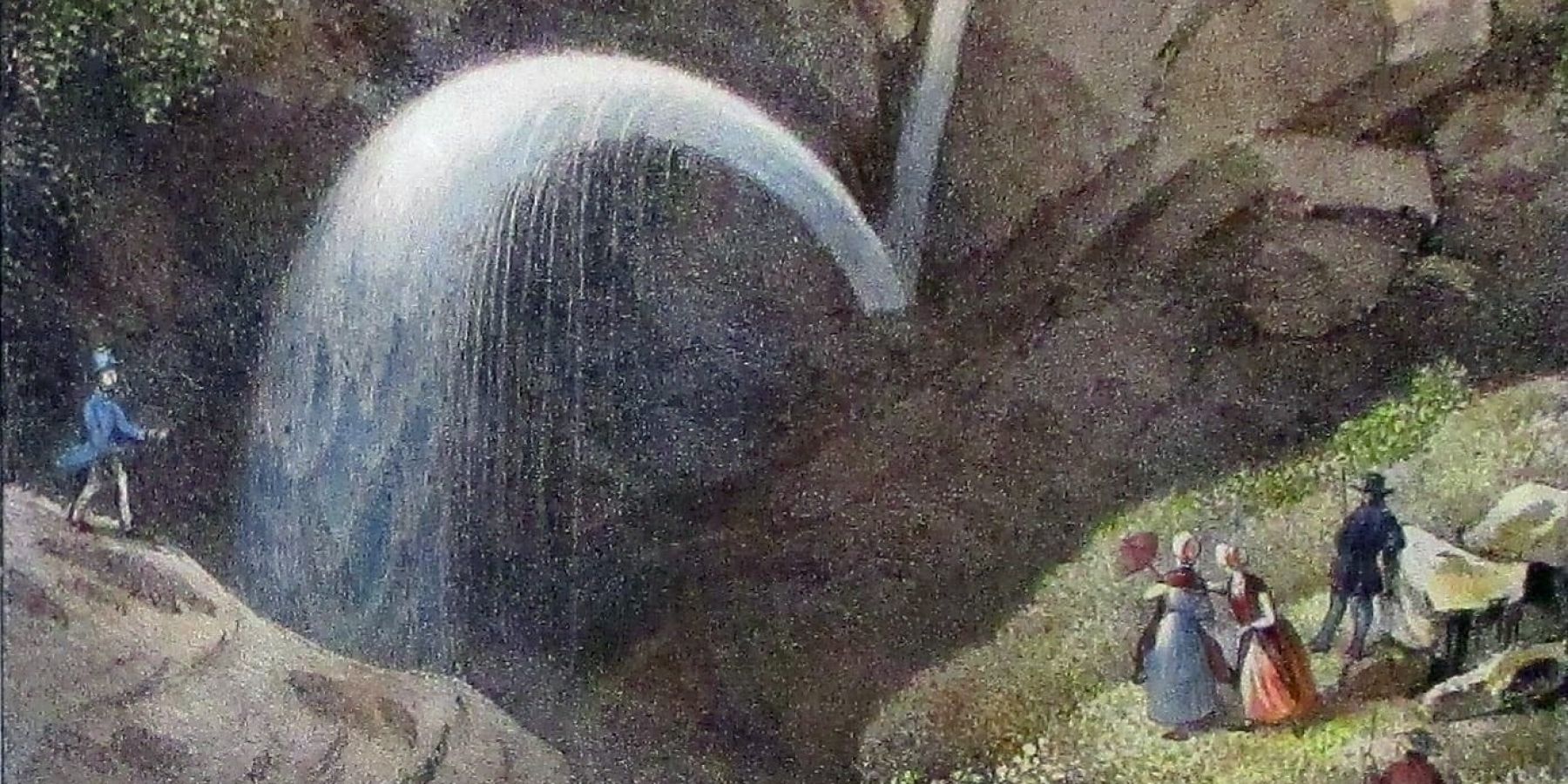 Torrents fougueux, rochers éboulés, crues et ravinements, ces phénomènes ne sont pas exceptionnels dans l’historique des montagnes. Parfois dévastateurs, ils présentent l’avantage de créer – parfois – des sites exceptionnels, durables ou éphémères. C’est le cas du Nant des Pèlerins, émissaire du glacier du même nom dont la langue descend presqu’à hauteur de Pierre Pointue. Creusant son lit au milieu de la forêt et des rochers, le ruisseau dévale la pente « presque à la verticale » avant de heurter un gros rocher. Selon Töpffer, qui visite le site avec ses élèves en 1842, c’est là que l’eau « tombe avec tant de force dans une espèce de godet ou d’entonnoir naturel pratiqué par sa chute dans le roc qu’elle remonte encore plus vite qu’elle n’est descendue, forme une gerbe en s’élevant et retombe comme un grand jet d’eau artificiel. » Il s’y mêle des débris, des pierres qu’on « voit encore décrire l’arc et se briser ou rebondir au moment où ils frappent le sol. »
