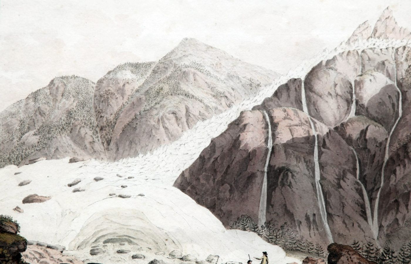 Chamonix et ses impressionnants glaciers, le sommet du mont Blanc conquis après d’âpres assauts, les neiges éternelles, les torrents fougueux, les cascades somptueuses et cet incroyable cristal de roche dont on disait, dans les cabinets de curiosité, qu’il était constitué de glace pétrifiée… Lorsqu’il pénètre dans la vallée, le voyageur des années 1800 peut laisser son imaginaire lui dicter les émotions les plus fortes.