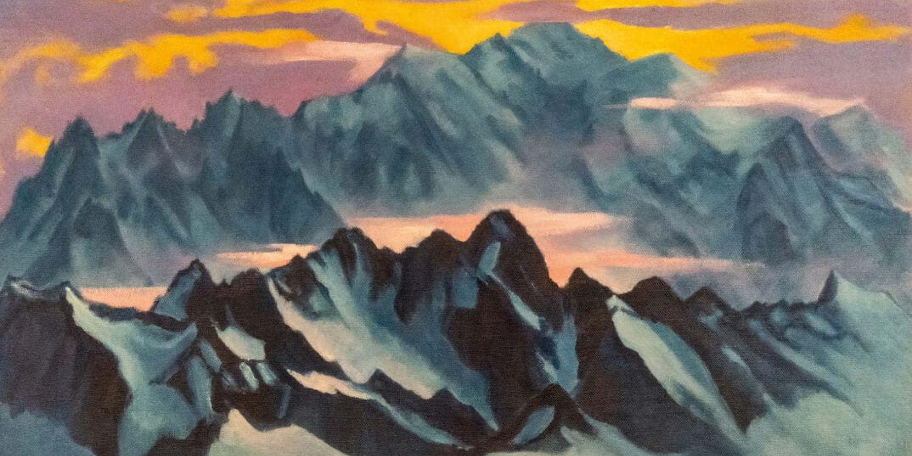 Cette toile rappelle certaines œuvres de Franz Schrader, fondateur en 1898 de la Société des Peintres de Montagne laquelle compte maintenant plus de cinq cents artistes. Pourtant la montagne reste un sujet difficile à traiter et n’a pas encore sa vraie place dans le monde de l’art. Outre Marcel Wibault (le père de Lionel), quelques grands noms émergent toutefois, avec des œuvres magistrales : Loppé, Contencin, Communal, Cariffa ou Abrate…