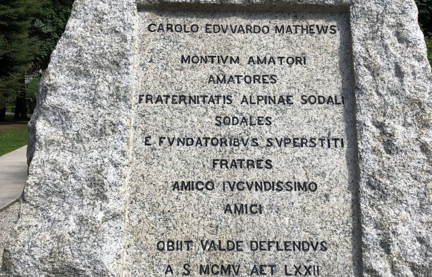 C’est aussi à ses qualités humaines qu’un honneur lui est rendu. Ainsi l’inscription en latin, rédigée par l’Evêque de Bristol et gravée dans la pierre, témoigne de l’humilité et de la générosité d’esprit de Mathews lequel parlait de l’alpinisme comme d’un noble passe-temps.
