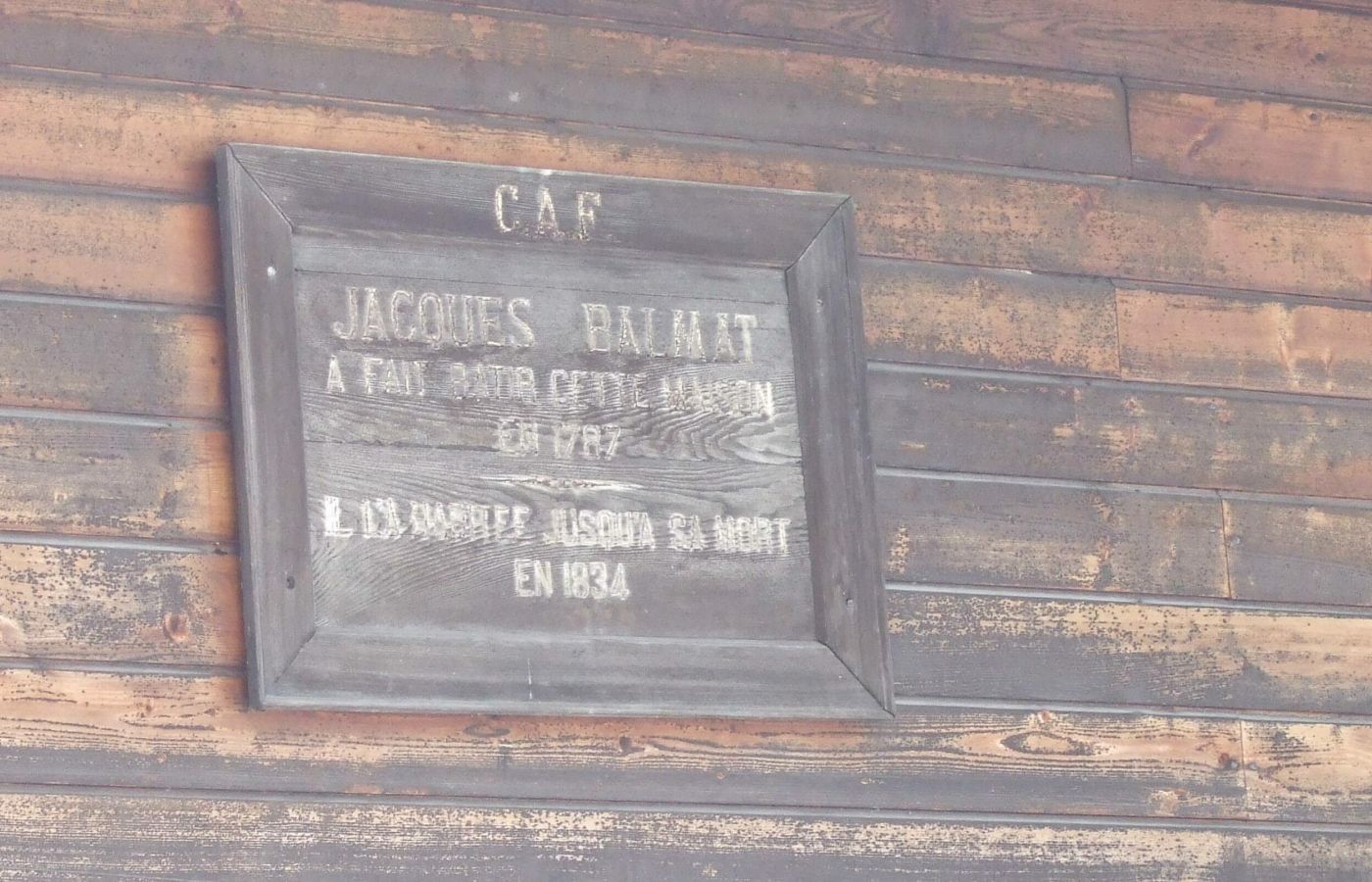Panneau actuel apposé sur la dernière demeure de Jacques Balmat aux Pèlerins d’en haut.