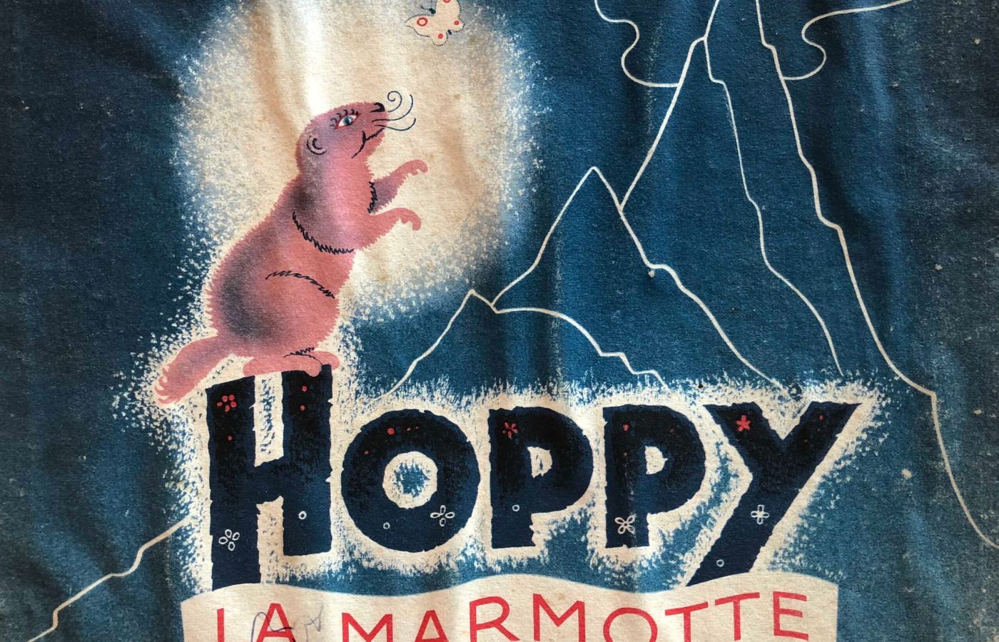 Les albums Hoppy la Marmotte et You-pi le Chamois, des albums pour enfants magnifiquement écrits par Philippe Gaussot et non moins magnifiquement illustrés par Pellos en 1945 et 1946. Ci-dessus, un exemplaire qui a beaucoup été feuilleté vu l’état de sa couverture.