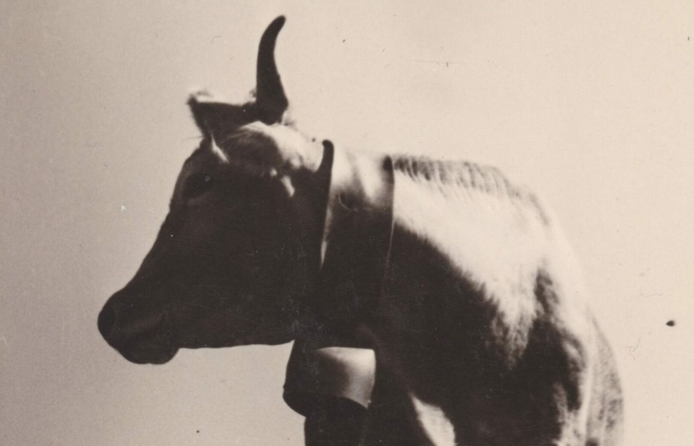 Troupeau de vaches traversant la Mer de Glace en direction de l’alpage de Bayer
