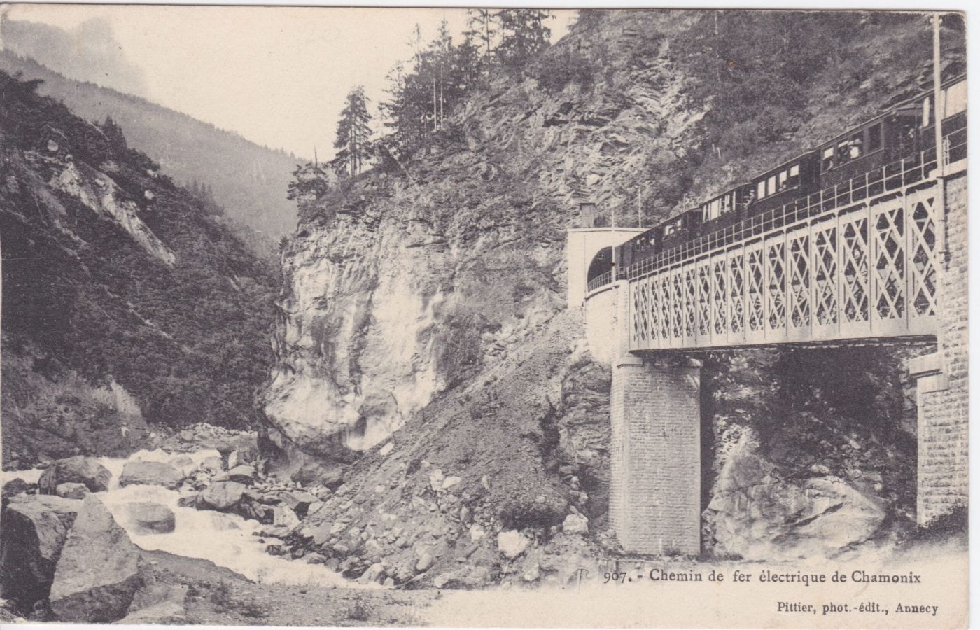 Années 1850 : le chemin de fer arrive en force sur l’ensemble de l’Europe. Petit à petit il y établit son réseau, véritable maillage destiné à desservir le plus grand nombre de villes et de bourgs. Chamonix est encore sous autorité sarde. En concurrence avec les grands projets suisses de liaison ferroviaire du Simplon et du Saint-Gothard, une étude voit le jour : l’établissement d’une voie ferrée qui remonterait la vallée de l’Arve, bifurquerait à droite un peu avant Sallanches (Oëx) pour s’élever progressivement en direction de Saint-Gervais. Après avoir traversé le Bonnant par un viaduc, la voie traverserait le village de Saint-Gervais, puis, par un tunnel de 4 km sous le Prarion, déboucherait dans la vallée de Chamonix avant de s’enfoncer une nouvelle fois, par un tunnel de 13,5 km, en direction de Courmayeur, du Val d’Aoste et de Turin.