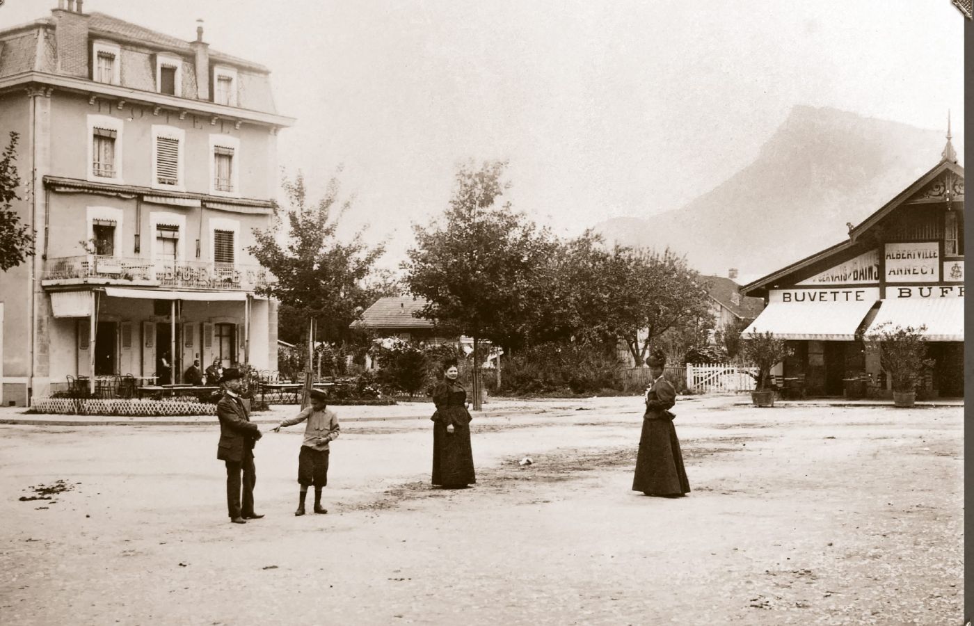 La place de la gare à Cluses, terminus du train jusqu’en 1897. (Album 1897 Amis du Vieux Chamonix)