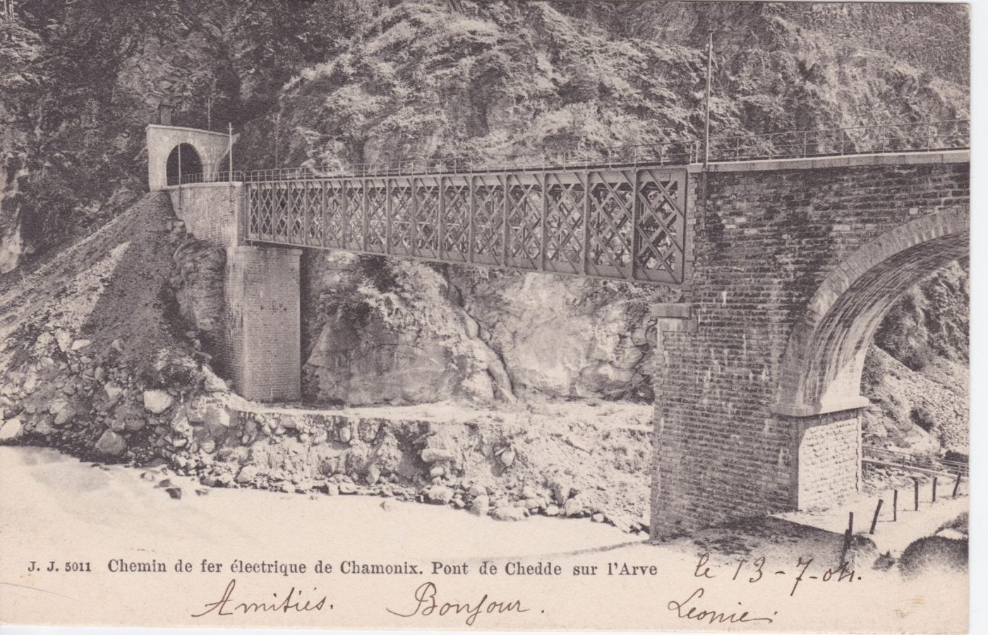 Après la gare de Chedde, le train va pouvoir emprunter le pont métallique qui enjambe l’Arve avant de pénétrer dans le petit tunnel jusqu’au Châtelard.