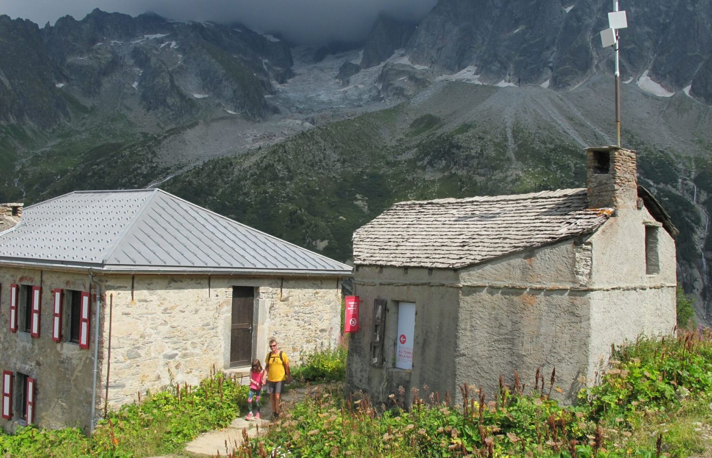 En 1779, un gentilhomme anglais, Lord Blair, se retrouve contraint, pris par la tempête, d’y passer quelque temps. L’endroit doit être particulièrement inconfortable puisqu’il offre aussitôt quelques guinées pour qu’on l’améliore. On construit alors une cabane de planches avec une inscription, au-dessus de la porte : « Blair’s Hospital – Utile Dulci ». On l’appellera « L’hospice de Blair ». Goethe se reposera dans ce « château de Montenvers » où « assis au coin du feu, on peut, de la fenêtre, contempler toute la vallée de glace ».