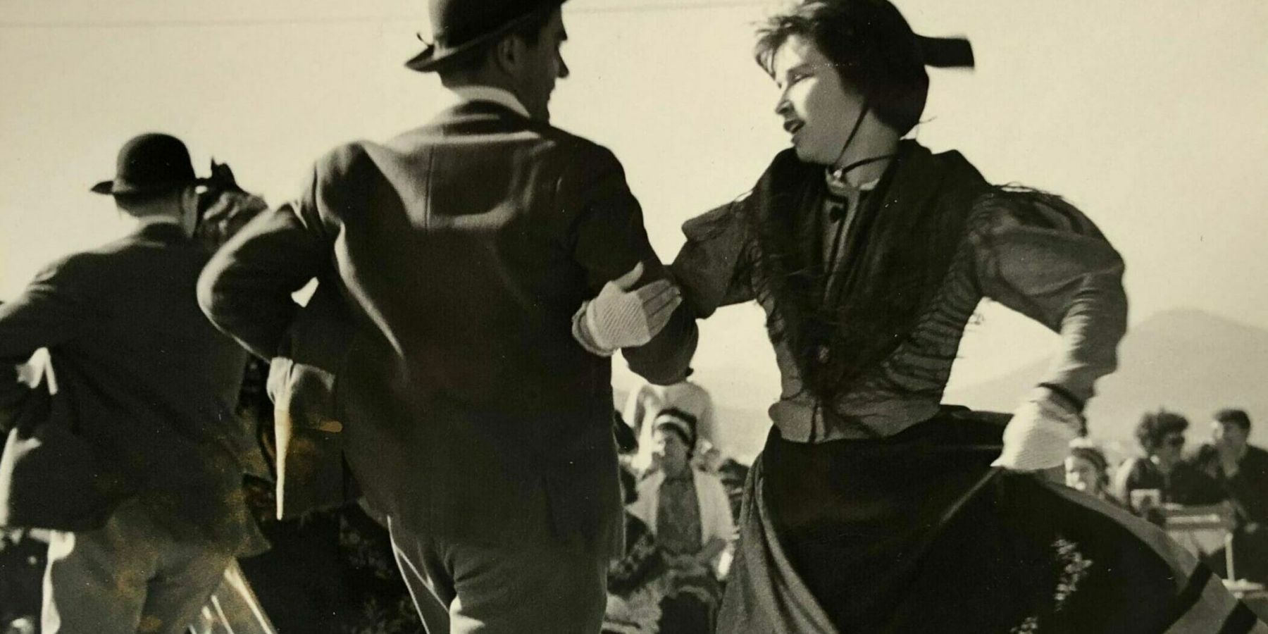Signe distinctif : les danseurs des Rhodos Chamoniards, dignes descendants de Jacques Balmat, portent une corde et un piolet à l’épaule, les outils indispensables à la pratique de l’alpinisme !