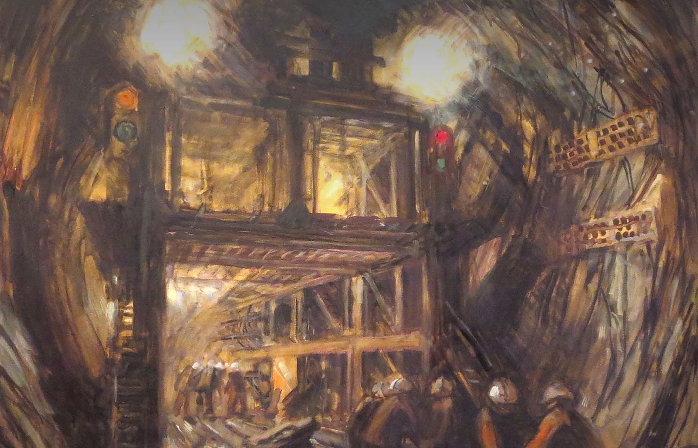 Seul peintre admis dans la galerie en cours de creusement, Marcel Wibault restitua, sur ses tableaux, les ambiances dantesques du chantier du front de taille. Les monstres d’acier, le bruit infernal, la poussière, l’obscurité ou le halo d’une lumière artificielle surréaliste.