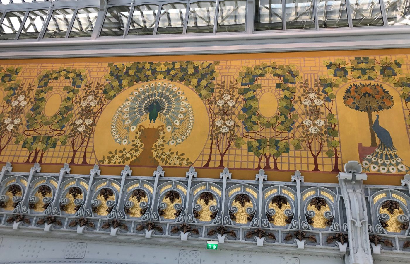 Grande fresque art déco au dernier étage de la Samaritaine à Paris récemment restaurée