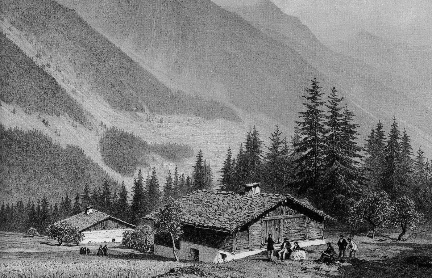 Aux Pèlerins d’en Haut, la maison de Jacques Balmat selon une gravure ancienne