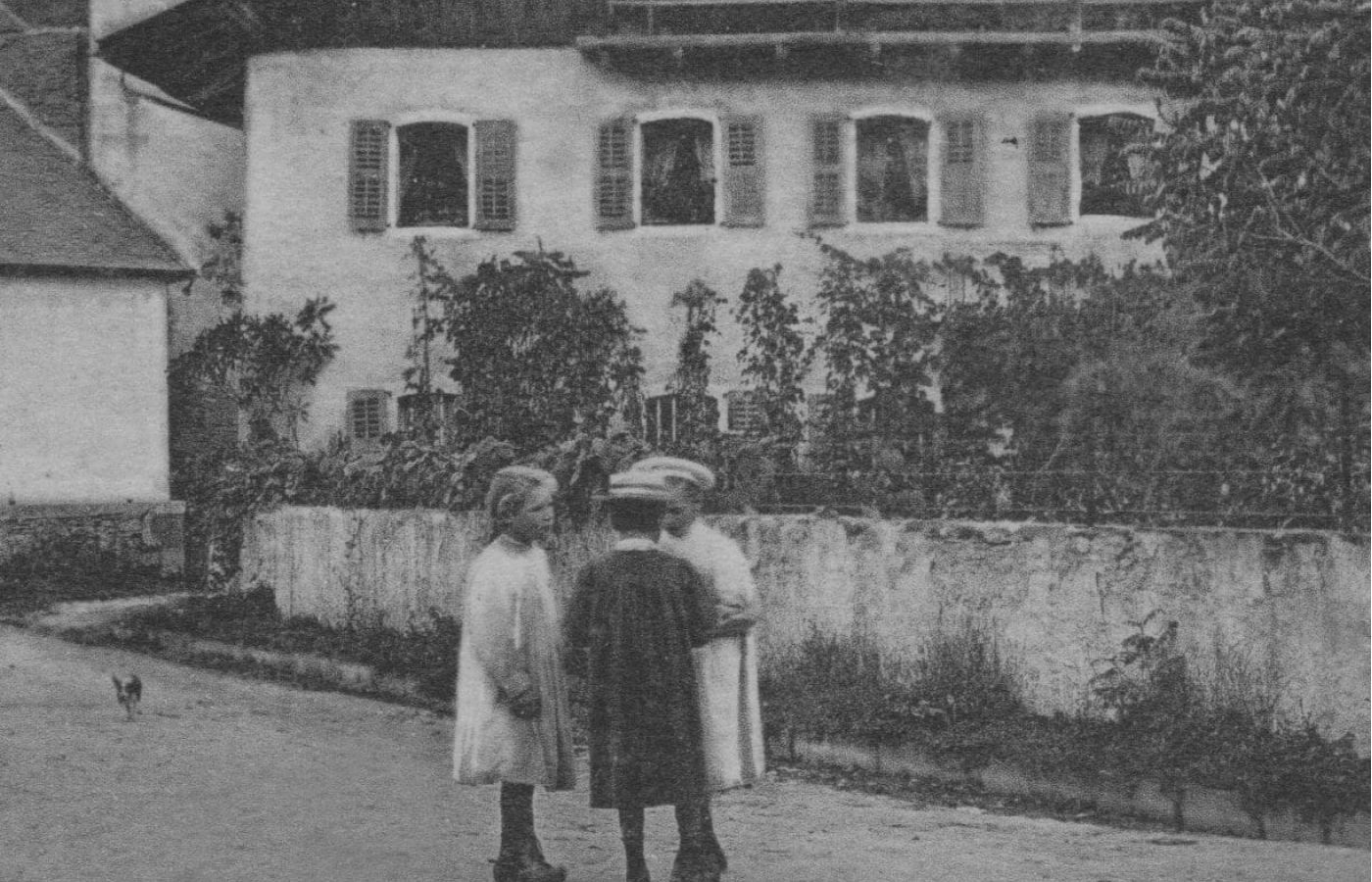 1925 ! Par ce beau dimanche, la rue de Servoz voit passer trois petites filles se rendant à l’église St Loup, leur paroisse. L’une vient de Montcoutant (commune de Passy). Elle a emprunté l’étroite route de terre qui descend dans la forêt et enjambe le tunnel du Châtelard. La deuxième arrive de Vaudagne (commune des Houches). En passant par la Fontaine, il lui a fallu trois bons quarts d’heure de marche. La troisième, (commune de Servoz) a déboulé tout droit le long de la Bosna depuis le Mont pour rejoindre ses amies au plus vite. La cloche a sonné, elles entrent.