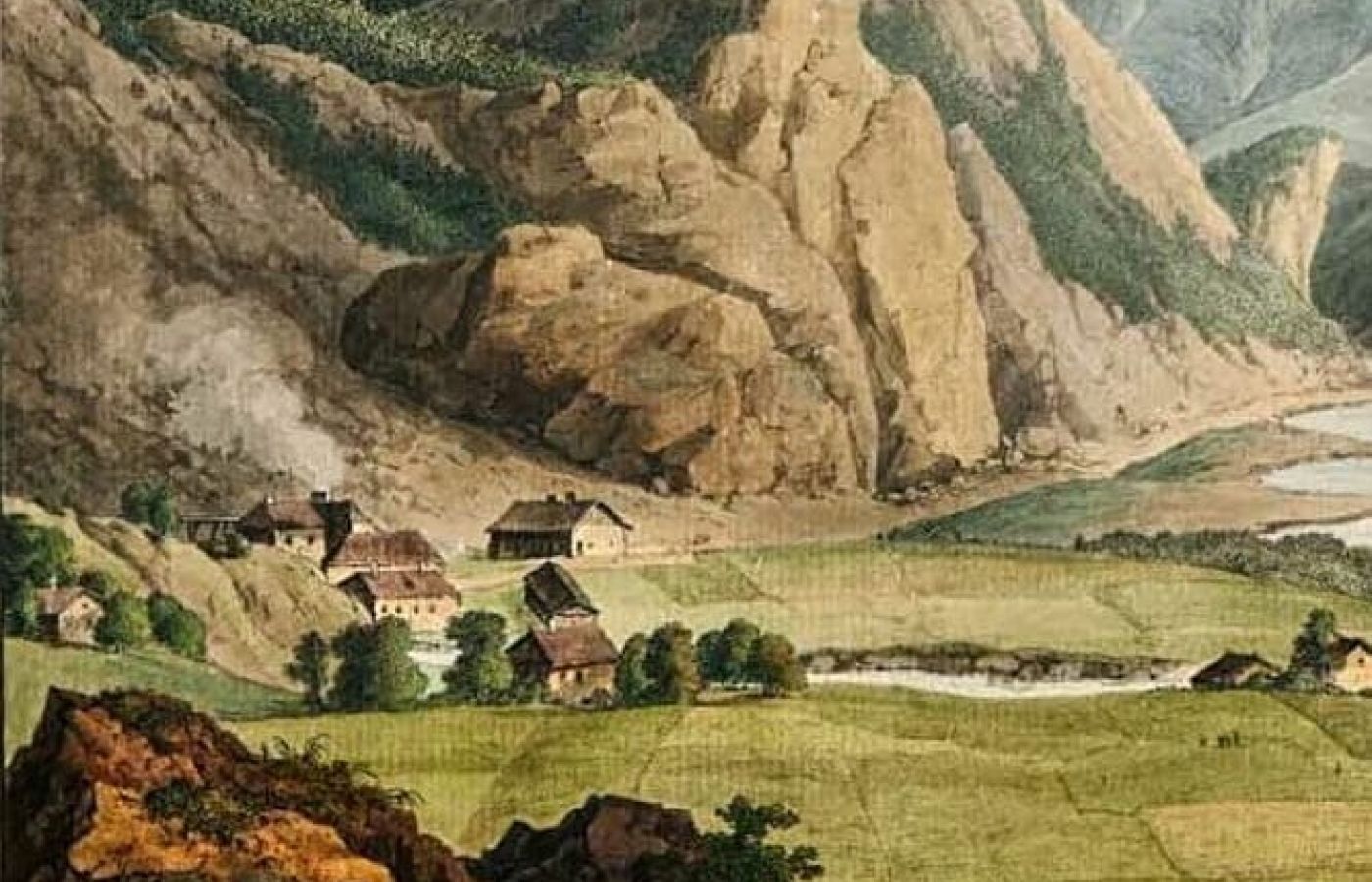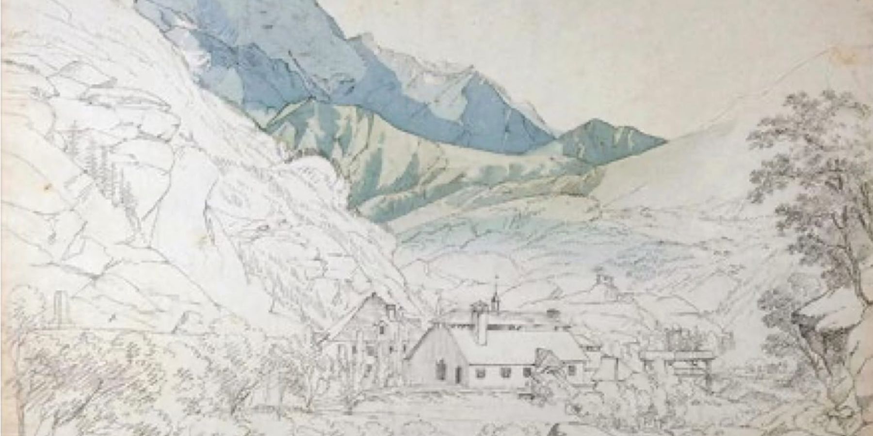 Servoz, les fonderies apparaissent sur cette aquarelle de Linck.