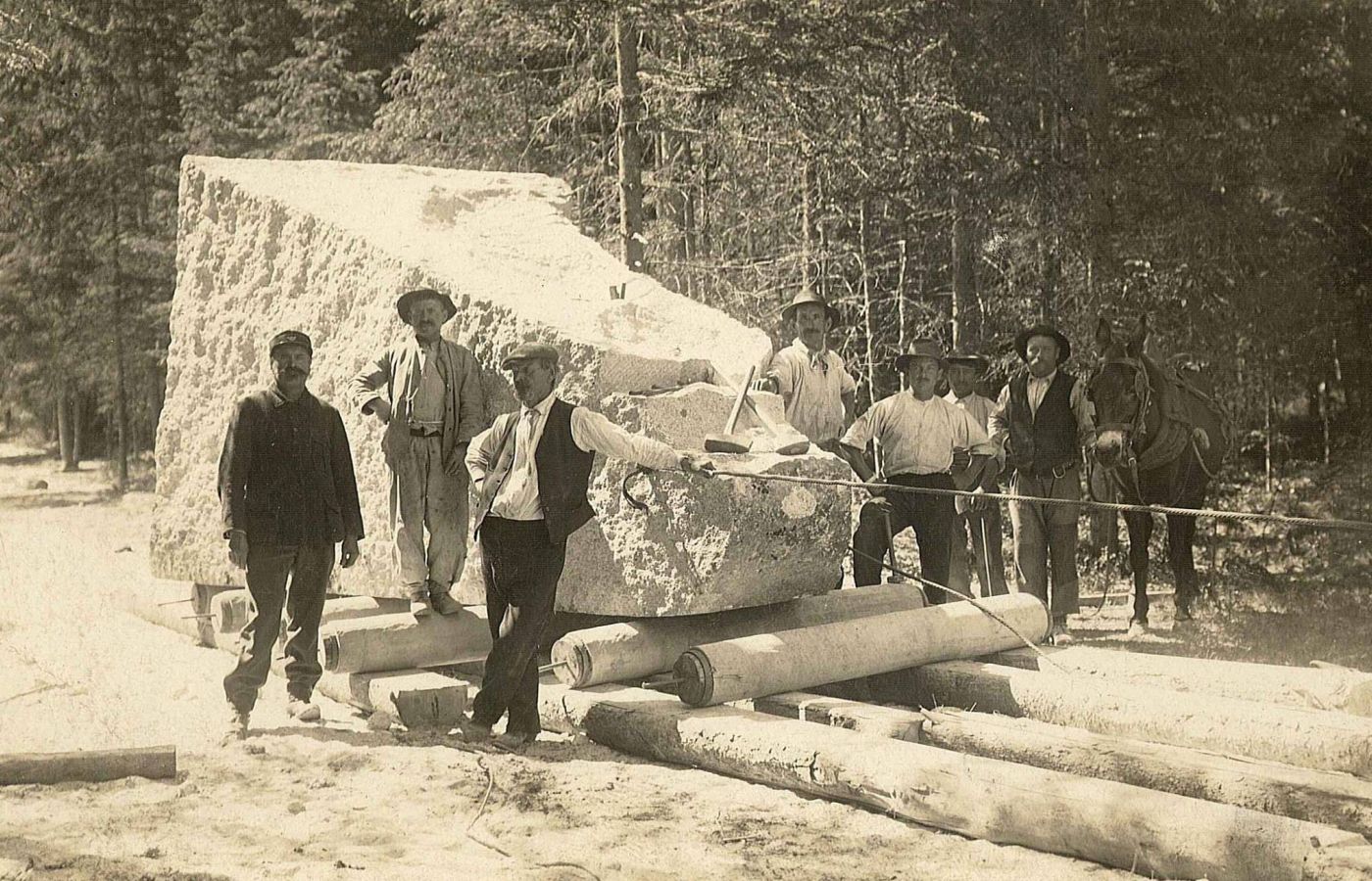 Arrivés dès le milieu du XIXe siècle, certains Italiens se sont, en effet, spécialisés dans la taille de cette pierre dite « froide », car très difficile à équarrir. Leur métier, à la fois très délicat et très physique, suppose une connaissance parfaite de la composition du granit : quartz, mica et feldspath. Seuls, un lit de cristaux plus fins ou une traînée de mica peut laisser repérer un plan de clivage, une possibilité de fendre ce minéral où les grains se mélangent, s’amalgament, inséparables ! Avec quelques broches d’acier, les graniteurs percent des trous distants d’une quinzaine de centimètres dans lesquels sont insérés des coins de bois. En hiver, les trous se remplissent d’eau qui se dilate en gelant. Quelques mois plus tard, les coins de bois gorgés d’humidité gonflent et continuent le processus d’écartement, faisant éclater la roche. La martelline et la bouchardepermettent alors de peaufiner la forme voulue, pilier nervuré ou chapiteau de pilier… Reste le délicat travail de sculpteur et de ciseleur à la massette de Galice et aux ciseaux. Les pierres préparées sont ensuite hissées sur un plateau de bois, lui-même roulé sur les rondins. Le chariot improvisé, tiré ou parfois retenu par hommes ou bêtes, est roulé sur un chemin de halage rapidement tracé.