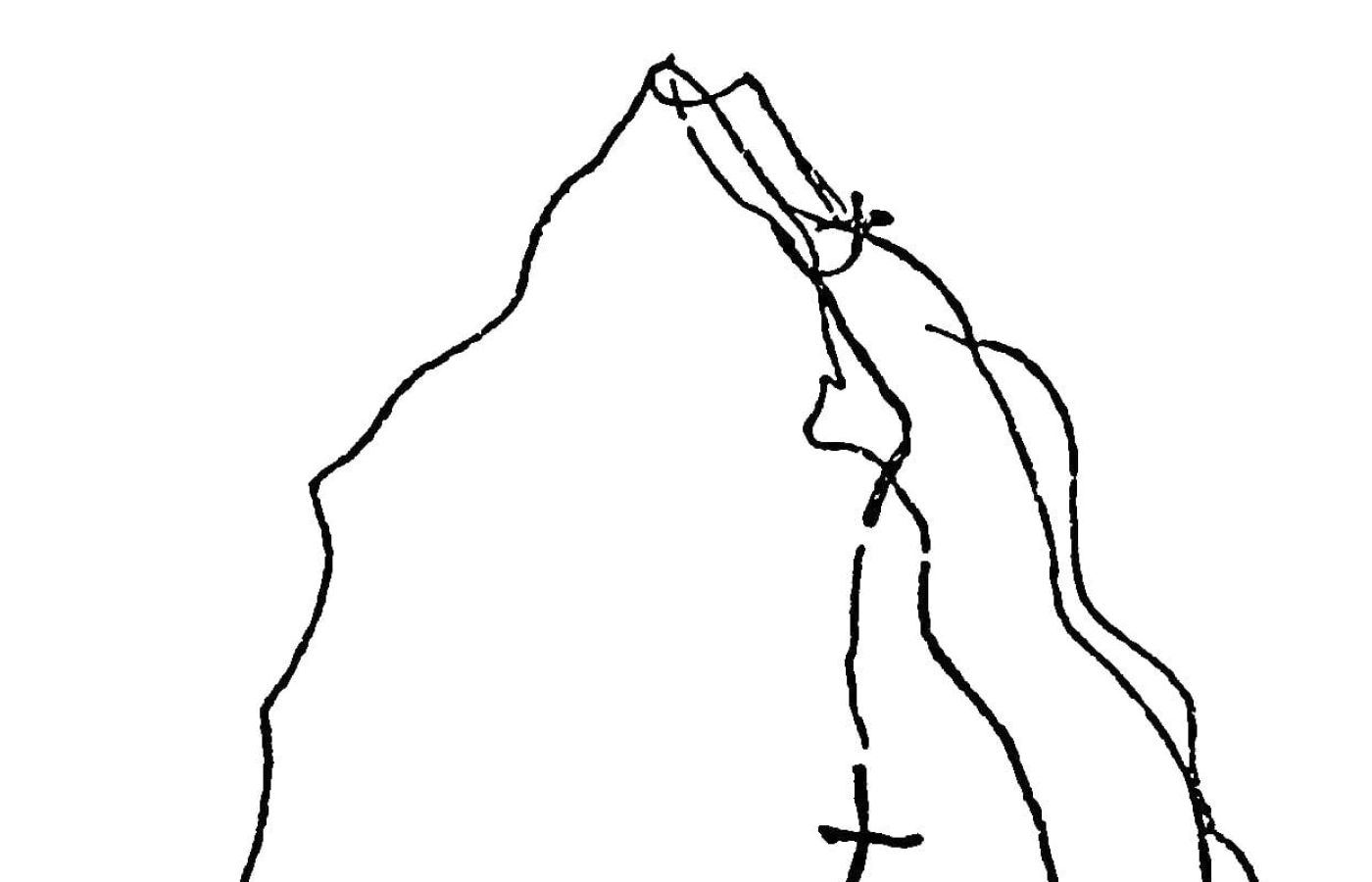 “… J’avais sous les yeux une aiguille très pointue et sans nom, la plus pointue peut-être de toute la chaîne, qui se dressait sur la gauche, devant l’aiguille du Triolet ; des blocs de protogine aux formes étranges, perçant la neige ça et là ; une grande corniche d’où pendaient d’énormes stalactites de glace, qui, s’en détachant par moments, glissaient le long de la pente que nous venions de remonter …”