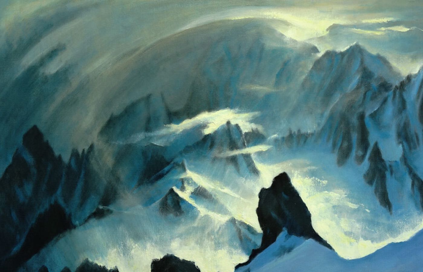 Mont-Blanc N° 53 peint en 2016 Huile sur toile 73 x 100 Reproductions du tableau et du texte publiées dans l’ouvrage intitulé « 100 mon Blanc », textes de Joëlle Dartigue-Paccalet, éditions …